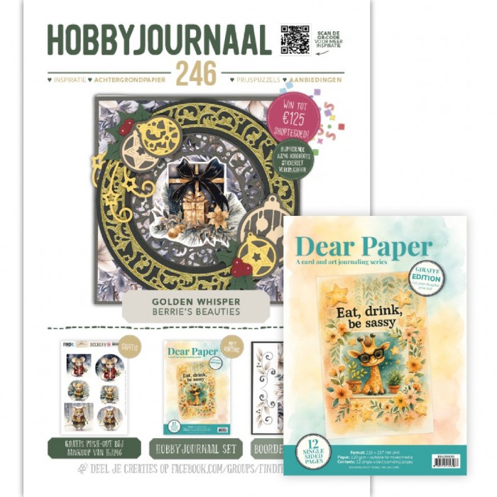 Deze set biedt een perfecte combinatie van inspiratie, technieken en direct toepasbare materialen. Je ontvangt het nieuwste Hobbyjournaal Magazine 250 , boordevol creatieve ideeën, voorbeelden en trends voor kaartmakers van elk niveau. De Hobbyjournaal The Best Off Knipvellen Brochure vormt daarbij een complete aanvulling op Hobbyjournaal 250. In deze brochure vind je prachtige 3D-afbeeldingen, populaire knipvellen én extra patronen die perfect aansluiten op de projecten uit het tijdschrift. Zo kun je meteen verder creëren met extra variatie, extra thema’s en extra mogelijkheden. Als cadeautje ontvang je gratis de Scenery Push Out – Berries Beauties – Skiing Snowmen , waarmee je direct complete kaarten kunt maken. De elementen zijn eenvoudig uit te drukken en ideaal voor winterse projecten. Inhoud van de set: • Hobbyjournaal 250 • Hobbyjournaal The Best Off Knipvellen Brochure (met 3D-afbeeldingen + patronen) • Gratis Scenery Push Out – Skiing Snowmen Deze set biedt maximale inspiratie en praktisch materiaal in één pakket — ideaal voor zowel beginners als ervaren hobbyisten. -